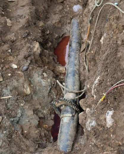 (管徑Ф720、壓力4.0Mpa,挖掘機(jī)野蠻施工造成的機(jī)械損傷,損傷長200mm,深度最深處約15%。使用MKT-8補(bǔ)強(qiáng)修復(fù)技術(shù),不停輸,不降壓,僅有2個(gè)小時(shí),就完成了修復(fù)工作)