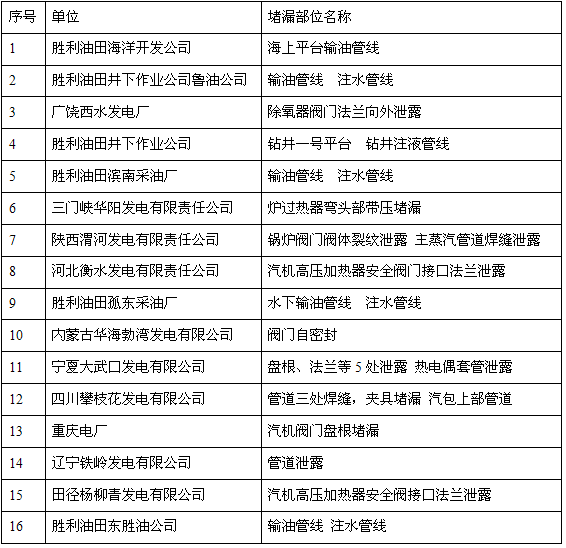 1、泄漏部位:法蘭、設(shè)備、管道上的孔洞、焊接缺陷、螺紋接頭填料函泄漏等